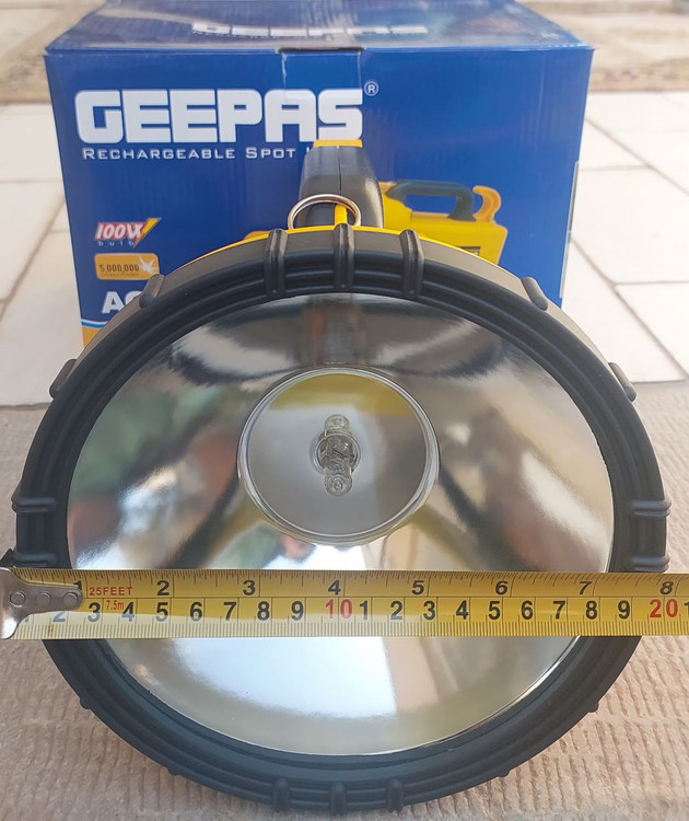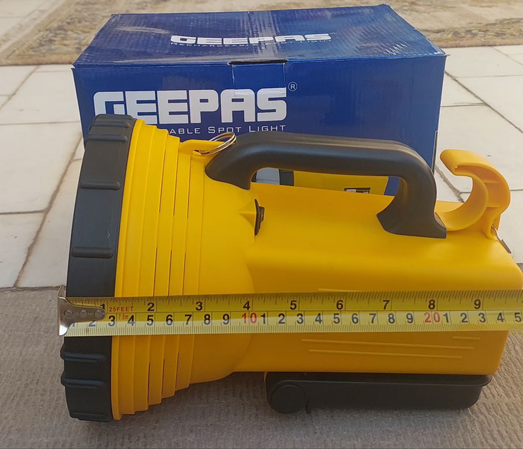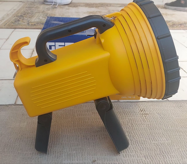 این چراغ قوه با باتری ۱۲ ولت کار میکند می توانید به باتری ماشین متصل کنید یا لامپ را عوض کنید