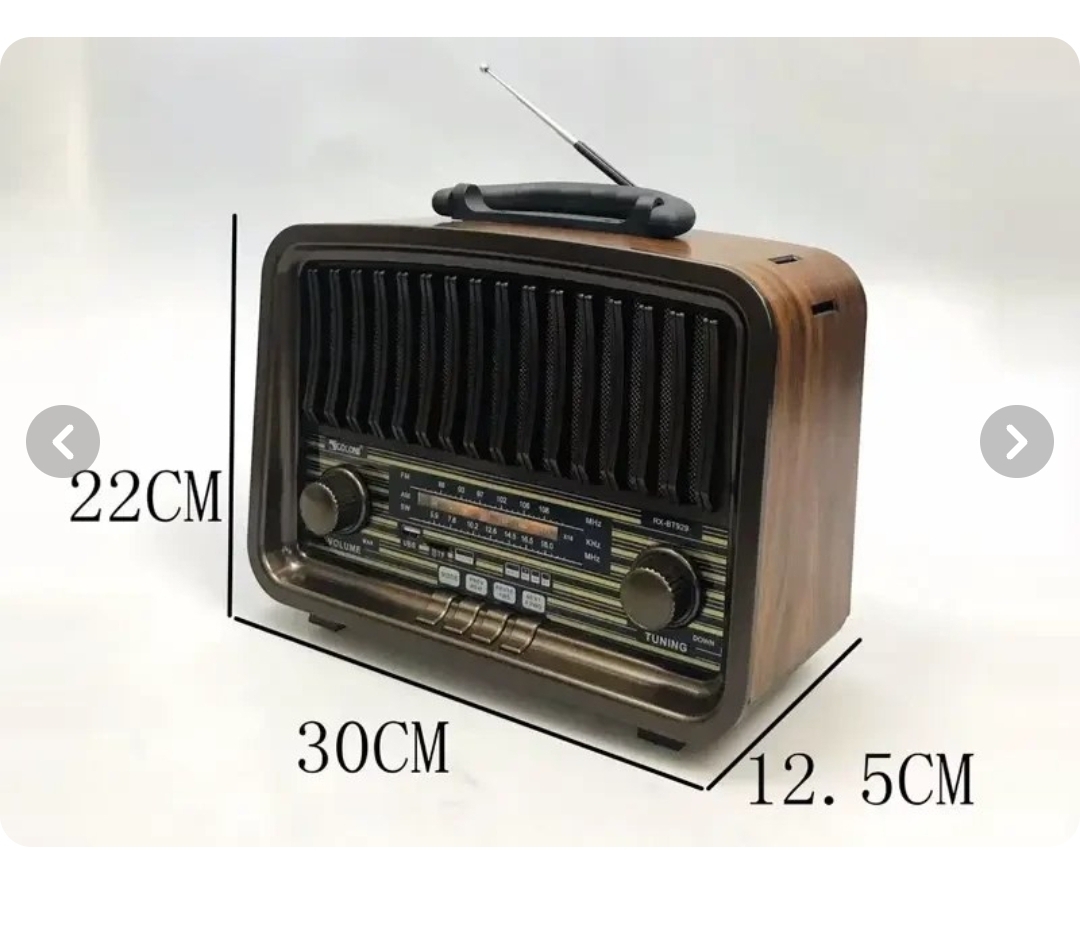 اسپیکر بلوتوثی و رادیوسنتی طرح قدیمی - قابلیت نصب فلش مموری USB, MICRO,بلوتوث - دارای دستگیره - فعال شدن دستگاه با باتری و کابل برق - نوع جستجو دستی - امواج دریافتی:SW , FM , AM