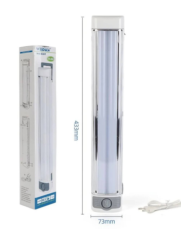 چراغ اضطراری ویداسی مدل WD-839T از ساختاری بهره میبرد که آن را برای استفاده در شرایط نبود منبع روشنایی کاربردی میسازد. این محصول از نور مناسبی بهره میبرد و میتواند در زمان قطعی برق تا حد مطلوبی یک اتاق را روشن کند. یک وسیله کاربردی مناسب در طول سفر، کوهنوردی، قطعی برق و... وسیلهای کاربردی است. این چراغ اضطراری دارای SMD است که باعث عمر طولانی و صرفه جویی انرژی میشود. 84 تا SMD این چراغ اضطراری باعث روشنایی بسیار خوبی میشود و میتوان به راحتی از آن به عنوان یک چراغ مهتابی استفاده کرد و همچنین میشود نور آن را تنظیم کرد. از آن دسته ابزاری است که حتی در خانه هنگام خاموشی برق بسیار کار آمد خواهد بود و نور مناسبی تا روشن شدن دوباره لامپ ها فراهم می نماید این چراغ اضطراری سبک ، بلند و قابل نصب بوده است و حتی میشود به راحتی آویزان کرد. این چراغ اضطراری دارای باتری 4500 میلی آمپر است که قابلیت بیش از 500 بار شارژ و بازیافت را دارد و به راحتی و سریع شارژ میشود و حداکثر شارژی که میشود نگه داشت تا 15 ساعت است.